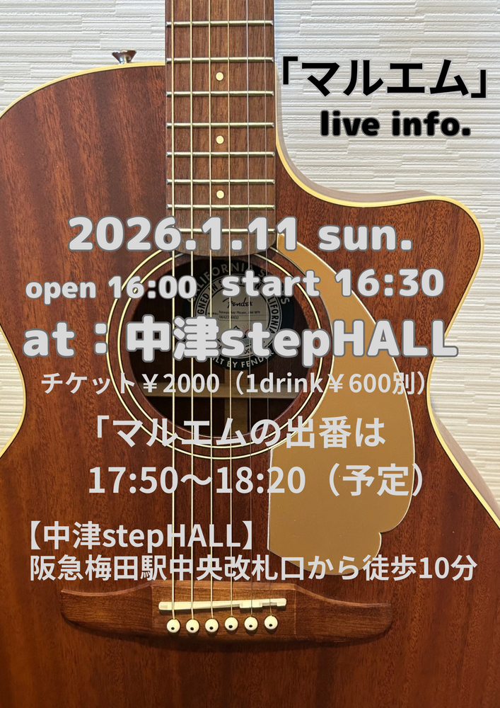 新年1/11(日)「マルエム」ライブ at : 中津stepHALL(大阪)
